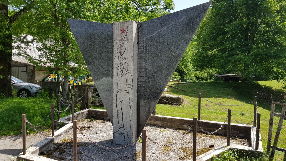 No, na jednom mjestu nailazimo na preživjeli spomenik partizanima i antifašističkoj borbi. Slikanje i nastavljamo dalje.